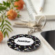 Chaveiro Lua branca, estrelas e nuvens padrão em preto