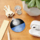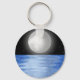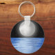 Uma lua brilhando refletindo em águas azul serenas com céu negro e estrelas cintilantes. Um design de arte digital original.