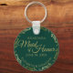 Estas chaveiros são projetadas para oferecer como favores à Madrinha de casamento na sua festa de casamento. Eles apresentam um design simples, mas elegante, com um fundo verde esmeralda, texto dourado, e uma borda de renda floral de folha de ouro. Uma maneira perfeita de obrigado da sua Madrinha de casamento por fazer parte do seu dia especial!