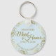 Estas chaveiros são projetadas para oferecer como favores à Madrinha de casamento na sua festa de casamento. Eles apresentam um design simples, mas elegante, com um fundo azul pálido e colorido, um texto dourado e uma borda floral de folha fina de ouro herdada. O texto diz "Madrinha de casamento" com espaço para seu nome, os nomes do casal e a data do casamento. Uma maneira perfeita de obrigado da sua Madrinha de casamento por fazer parte do seu dia especial!