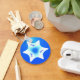 Apresenta uma estrela fractal branca de David num fundo azul.