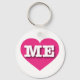 Este chaveiro apresenta um coração cor-de-rosa-quente vibrante contendo as letras maiúsculas, brancas e em negrito ME, a abreviação oficial para Maine, o estado do pinheiro.