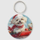 Chaveiro Malti Tzu Dog em Sledge Deixe-o nevar no Natal