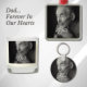 Um chaveiro personalizado e personalizado com nome e espaço para uma foto.