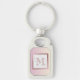 Este chaveiro apresenta um monograma rosa de ouro em um quadro de mármore em um plano de fundo cinza rosa-baunilha.