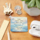 Mensagem personalizada ou chaveiro de citação com sua mensagem impressa em uma pintura a óleo que representa um nascer do sol no mar com nuvens e ondas calmas.