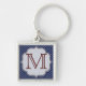 Marinho Azul Quarterfoil Latim Trimestre Folha Monograma Padrão personalizado inicial do Tecido Cadeia-chave