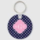 Chaveiro Marinho Bolinhas Branco Quatrefoil Rosa 3 Monogram