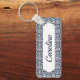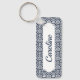 Chaveiro Marinho Com Padrão De Lace De Crochet Branco
