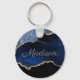 Chaveiro Marinho Moderno Azul Dourado Marble Glitter Nome