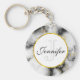 Um chaveiro com um padrão moderno e elegante. Cinzas brancas, pretas e enfumaçados marmoreadas com fitas finas de espirais douradas ao longo do padrão. Um círculo branco com uma estrutura falsa-dourada colocada sobre cima com a sua inicial monograma e dentro de nome.