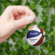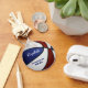 Este legal chaveiro do tema de basquete apresenta a imagem realista de uma bola de basquete que tem painéis coloridos azuis, brancos e marôons alternados - facilmente personalizados com o nome de atleta e a escola & mascot na frente e número de camisa no verso - por katz_d_zynes