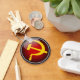Um chaveiro com um martelo soviético da era comunista e um ícone foice.
