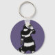 Chaveiro de gato assustador com um desenho de tinta representando um estranho gatinho listrado preto e branco com pescoço longo segurando uma máscara de crânio. Parece que uma de suas luvas está fora e sua mão esquelética mostra de sua manga. Pergunto-me se é muito mais uma criatura assustadora do que finge estar no Halloween.