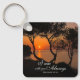 A chaveiro de Escrituras Inspirativas retrata uma bela fotografia natural de um pôr do sol ouro refletida na água enquadrada por árvores pitorescas. Apresenta a Bíblia Verse Matthew 28:20, nas palavras de Jesus, "Estou sempre contigo." *
