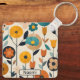 A retro-modern floral design from the 1960s, with stick stems and circular blossoms creates a cute and fun keychain. Great stocking stuffer!