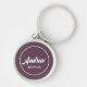 Estilo Premium, cadeia de teclas de metal para o seu casamento Melhor Homem, que mostra seu nome personalizado em letras brancas impressas em um fundo de cor de berinjela. Edite o nome do Melhor Homem no chaveiro e substitua-o conforme desejado. Selecione o estilo de chaveiro. Disponível em muitos esquemas populares de cor de casamento.