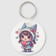 Chaveiro Menina Kawaii Chibi com Pingente de Coração