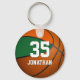 Este chaveiro de basquete para rapazes apresenta um gráfico de basquete simples com as cores laranja e verde da sua escola em dois painéis do basquete e o nome de jogador facilmente personalizável e o grande número de camisa num estilo estilo desportivo, com letra de varsidade - por katz_d_zynes