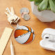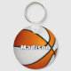 Esta chave de basquete personalizada para raparigas ou rapazes apresenta a imagem realista de uma bola de basquete que tem painéis brancos e cor de laranja alternados - personalize o nome do jogador na frente e atrás - por katz_d_zynes