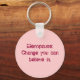 Um anel de chaves humorístico mostra suas opiniões políticas e seu lado feminino.