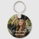 Comemore sua graduação com nosso "Formando de Mensagem de Foto Personalizada do Script Moderno do Chaveiro". Este chaveiro elegante apresenta uma foto personalizada, nome na frente, com uma mensagem personalizada do formando, ano da classe Name e escola no verso. Perfeito como um favor partidário, este chaveiro é um guardião único que captura seu dia especial e expressa sua gratidão aos amigos e à família.
