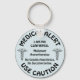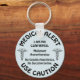"MEDIC ALERT, USAR CUIDADO!" "Estou confirmado a MH." Hipertermia Maligna: Sem Anestésicos Voláteis, Sem Succinilcolina." Chaveiro em azul claro com texto preto e imagens por Design de Gráfico de Negócios Macacos.