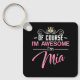 Claro que sou incrível, sou Mia, em sans brancos e cor-de-rosa misturados e letras decorativas cursivas com bordos brancos e rolhas e cortou uma coroa ouro.