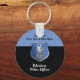 Uma imagem negra e branca das Ruas. Michael é visto na forma de um crachá policial. Santo Michael é o santo paternalista das ofertas policiais. Este presente, lembrança e item de doação envia bênçãos e parabéns a um homem ou mulher quando começam a trabalhar como policial.