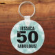 Uma mistura de escrituras bonitas e ousadia moderna com este simples design "50 e Fabuloso"! Apresentando uma coloração clássica em preto e branco, com um salto de cor do fundo de aquarela azul-lacrimogêneo (ou turquesa clara). Personalize o nome e, se necessário, você também poderá alterar o 'e' e o 'fabuloso' se houver outra palavra que você preferir. presente de excelente para a honra de aniversário! Se você quiser ver este impressão em outro fundo de cor, por favor me envie uma mensagem e eu verei o que posso fazer! Nome Personalizado Milestone 50º Aniversário 50º E Fabuloso chaveiro de Teal Watercolor