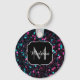 Personalize a cadeia de teclas cintilantes com seu nome e nome iniciais. Lindos brilhos glamourosos cor-de-rosa e azuis brilhantes. Foto de faíscas de mosaico azul e rosa, não é uma falha real!