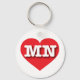 Esta cadeia-chave apresenta um coração vermelho vibrante contendo as letras maiúsculas, brancas e em negrito MN, a abreviação oficial para Minnesota, o estado estelar norte.