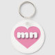 Esta cadeia-chave apresenta um coração cor-de-rosa vibrante contendo as letras maiúsculas mn, brancas, arredondadas e em negrito, uma abreviação lúdica para Minnesota, o estado estelar norte.