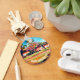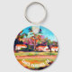 Esta colorida souvenir exibe uma pintura paisagística feita com tintas vinílicas e lápis coloridos, com o Parque Histórico da Missão, dos Papais noeis Barbara, CA. Se você quiser personalizar este chaveiro como presente, substitua o texto por qualquer texto que quiser.