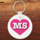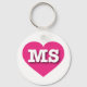 Esta cadeia-chave apresenta um coração rosa-quente vibrante contendo as letras maiúsculas, brancas e em negrito MS, a abreviação oficial para Mississippi, o estado magnólia.