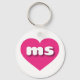 Esta cadeia-chave apresenta um coração rosa-quente vibrante contendo as letras minúsculas em negrito, branco, arredondadas, ms, uma abreviação lúdica para o Mississippi, o estado magnólia.