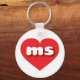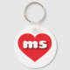 Este chaveiro apresenta um coração vermelho vibrante contendo as letras minúsculas em negrito, branco, arredondadas, uma abreviação lúdica para o Mississippi, o estado magnólia.