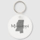 This Mississippi key chain has the silhouette outline map shape of the Magnolia State filled in with a diagonal lined dark grey background with the name written across the front in black.
