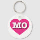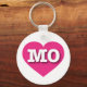 Esta cadeia de teclas apresenta um coração rosa vibrante e formidável contendo as letras maiúsculas brancas em negrito MO, a abreviação oficial do estado de Missouri, o show me state.