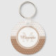 Dê ao seu estilo pessoal um olhar contemporâneo feminino com esta tendência marrom-claro e chaveiro branco com um padrão de bolinhas de círculo mod. Qualquer garota moderna adoraria ter seu nome e monograma inicial personalizado neste pré-disquete e design moderna.