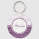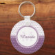 Give your personal style a girly contemporary look with this trendy purple and white keychains with a mod circle polka dot pattern. Any modern girl would love to have her name and monogram initial personalized on this preppy and modern design.