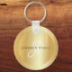 Chaveiro de Botão Arredondado Moderno com nome Elegante Dourado monograma.