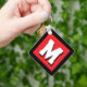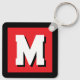 Modern custom name initial monogram metal keychain. Personalize with custom text. Red black and white colors can be customized. Square shape. Bulk gift ideas.