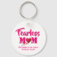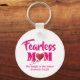MOM SEM MEDO proverbe 31 chaveiro em tipografia rosa-quente. Na moda, mensagem inspiradora moderna para uma mãe ou mãe destemida, baseada no Proverbs 31:25, que diz 'ELA RI NO FUTURO'. Tipografia rosa-quente com imagem vermelha do coração. Este Proverbs 31 faria um presente ideal para Dia de as mães, aniversário, Natal, ou seria excelente como presente de favor na igreja, ou como mercadoria em conferências femininas, etc. O verso da Bíblia cristã é PERSONALIZÁVEL, portanto você pode adicionar seu nome ou criar seu próprio texto. Escolha a partir de uma ampla seleção de designs de chaveiro inspiração cristã. Parte da coleção FEARLESS em Designs Bereanos.