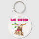 Uma macaca bonita com uma flor rosa balançando na cauda de um galho e um texto cor-de-rosa lê "Big Sister" em T-shirts irmãs grandes, correntes chave, cartões, autocolantes, sacos de tote, ímãs, mousépads, travesseiros e outras irmãs grandes e presentes!