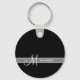 Um chaveiro de designer moderno com um fundo preto elegante e uma faixa branca fosco moderna. Personalize este toque de tecla com monogramas elegantes adicionando seu nome e suas iniciais.