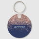 Rosa Bege Dourado - Azul Naval e Brilho Falso Elegante e Moderno Chic Tendência de Luxo Monograma chaveiro. Estes monogramas - adicione seu próprio nome tapetes de carro personalizados podem ser atualizados com seu nome.