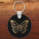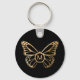 Uma elegante e na moda, chaveiro de borboleta preta e dourada. Você pode adicionar um monograma inicial a este design. Observe que os detalhes das folhas são simulados.