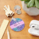 O brilho púrpura, azul e verde brilha o nome do monograma e o chaveiro inicial. Seu nome personalizado e monograma são escritos em um elegante roteiro escrito à mão com um fundo de rosa claro. Você pode alterar a cor do texto, o estilo e o tamanho da fonte usando a opção personalizar.