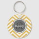 Padrão ziguezague branco e amarelo monograma com nome personalizado. Design geométrica moderna, bonita, giro, moderna, apresentando uma placa de nome em círculo de cinza que é facilmente personalizada com seu primeiro nome e a letra inicial do sobrenome.